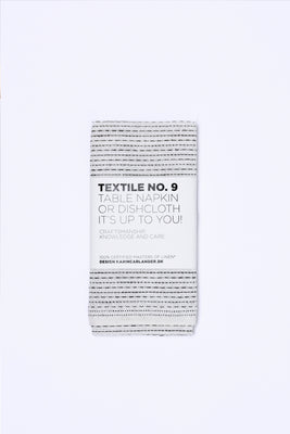 100% linen tea towel by Danish textile artist Karin Carlander. The linen is spun from flax naturally grown and retted on the ground from fields stretching from Caen in France to Belgium and Amsterdam. Each textile has woven selvedges as an important reference to hand-weaving and the artistic process.