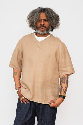 Tightly Twisted Cotton and Hemp Long Sleeve Henley Shirt, Walnut