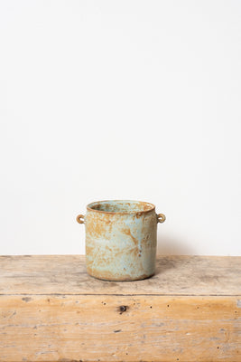 Nobue Ibaraki's collection of earthenware works are all hand built with natural glazes that evoke buried treasure. No two works are alike. The metallic appearance is the result of the chemical reaction to the firing, obtained with glazes containing cobalt or copper and clays composed of other metals as well. Materials are sourced locally in Tajimi, Japan.