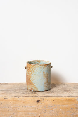 Nobue Ibaraki's collection of earthenware works are all hand built with natural glazes that evoke buried treasure. No two works are alike. The metallic appearance is the result of the chemical reaction to the firing, obtained with glazes containing cobalt or copper and clays composed of other metals as well. Materials are sourced locally in Tajimi, Japan.