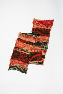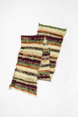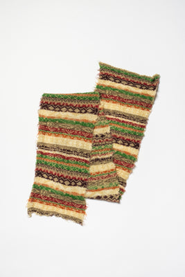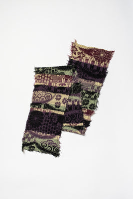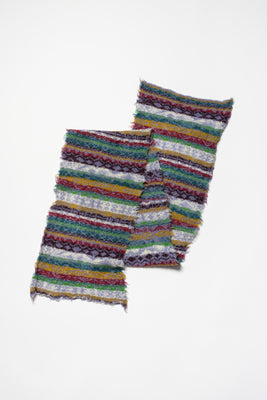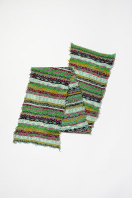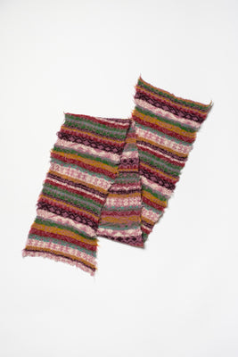 The Butapana scarf is knit from 100% merino wool. Patterned with geometric and floral motifs, this scarf will bring warmth and texture to your wardrobe. Its loose-knit structure gives it a plush and cozy feel. Available in 5 colorways.