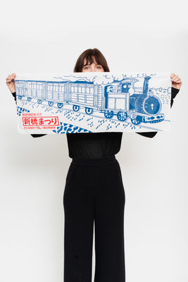 Vintage Japanese Shop Tenugui —Commemorative Tenugui — Railway 100 Years, Shimbashi Festival Japan, 1972