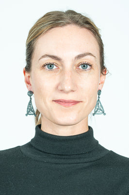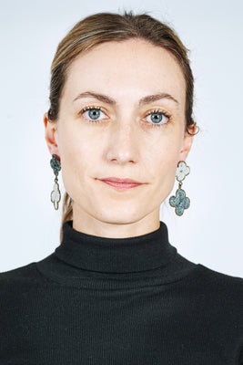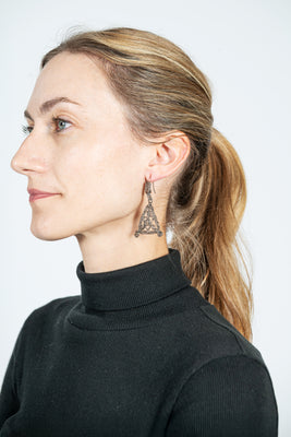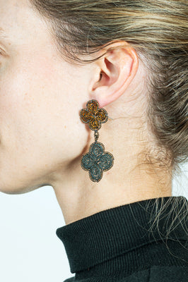 Double Venetian Window Earrings Bronze and Blue-Gray