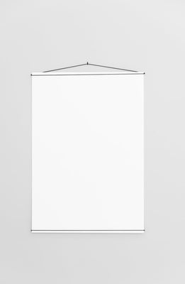 Moebe's open back frame consists of 4 aluminum slats, 2 sheets of acrylic glass, and a long rubber band that holds the frame together. Images or artwork can easily be switched out, as the frame can be disassembled simply by stretching the rubber band. Perfect for displaying two-dimensional images or objects such as photos, drawings, and pressed flowers.