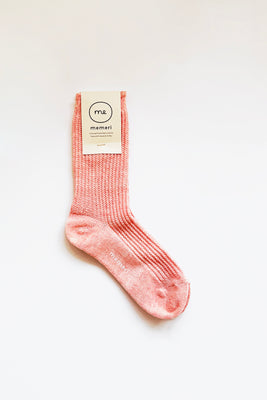 Linen Ribbed Socks Coral