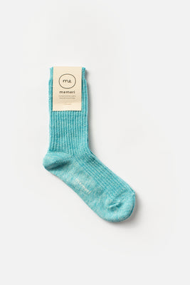 Linen + Cotton Ribbed Ankle Socks Blue