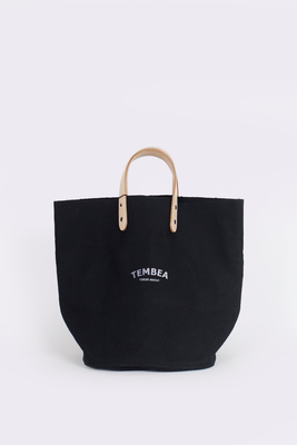 This single-compartment cotton canvas tote bag by Japanese designer Torso was made on old-fashioned shuttle looms that have been in use for over 40 or 50 years. Made of a sturdy cotton canvas treated with paraffin in order to be water repellent. Features a solid selvedge edge and a light leather strap.