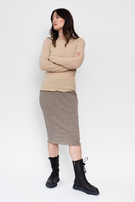 This basic cotton long sleeve is a year long staple. It has a classic crew neckline and slightly flared torso, and fitted sleeves. It's great for layering under other garments or on its own. Available in five colors.